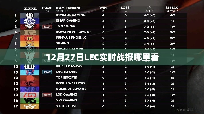 想要观看12月27日的LEC实时战报,你可以通过官方渠道、第三方平台和社交媒体等途径进行观看,在观看过程中,注意遵守规定,保护个人信息,同时享受比赛的精彩瞬间,学习战术技巧,与其他粉丝互动交流。